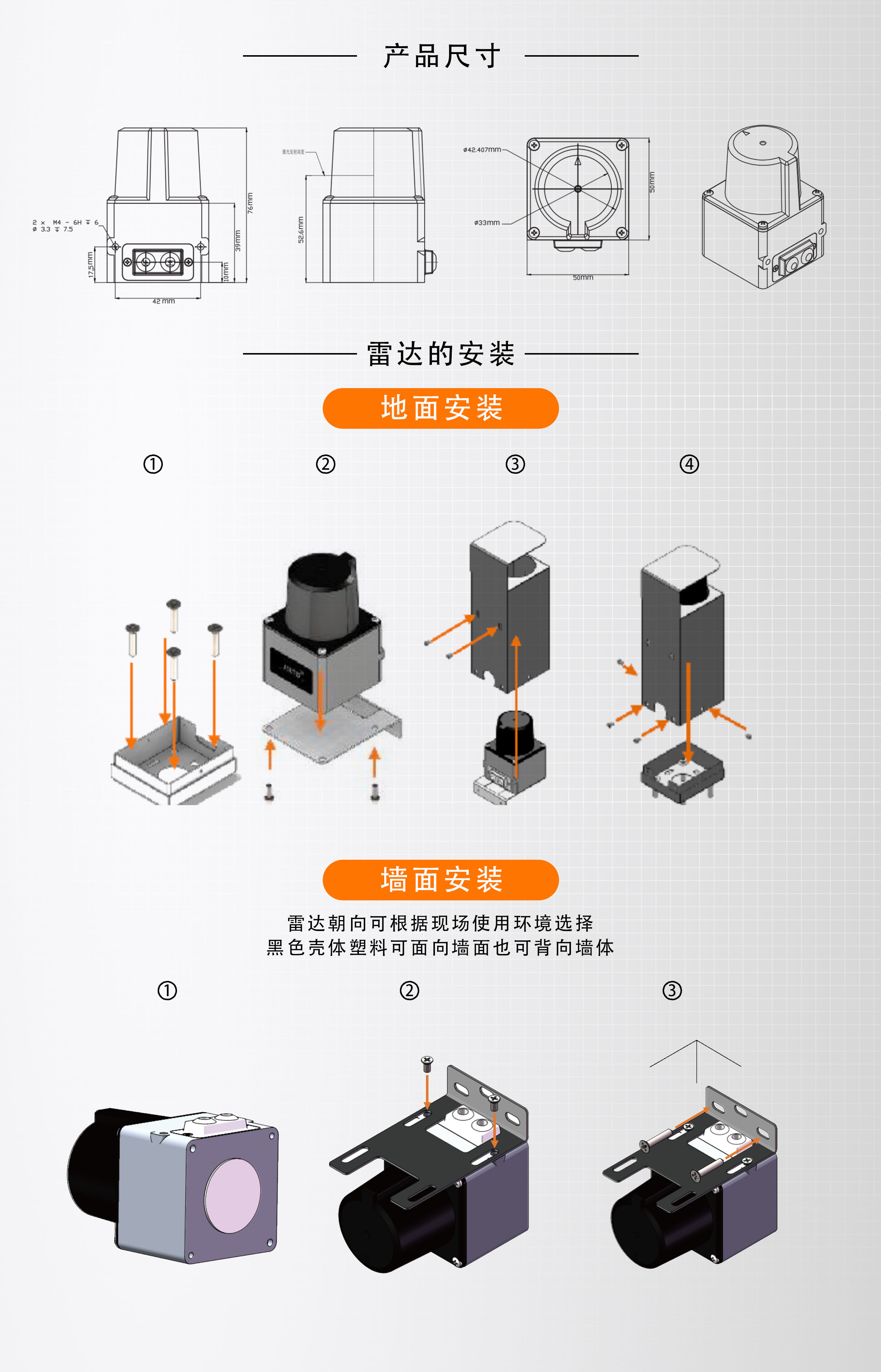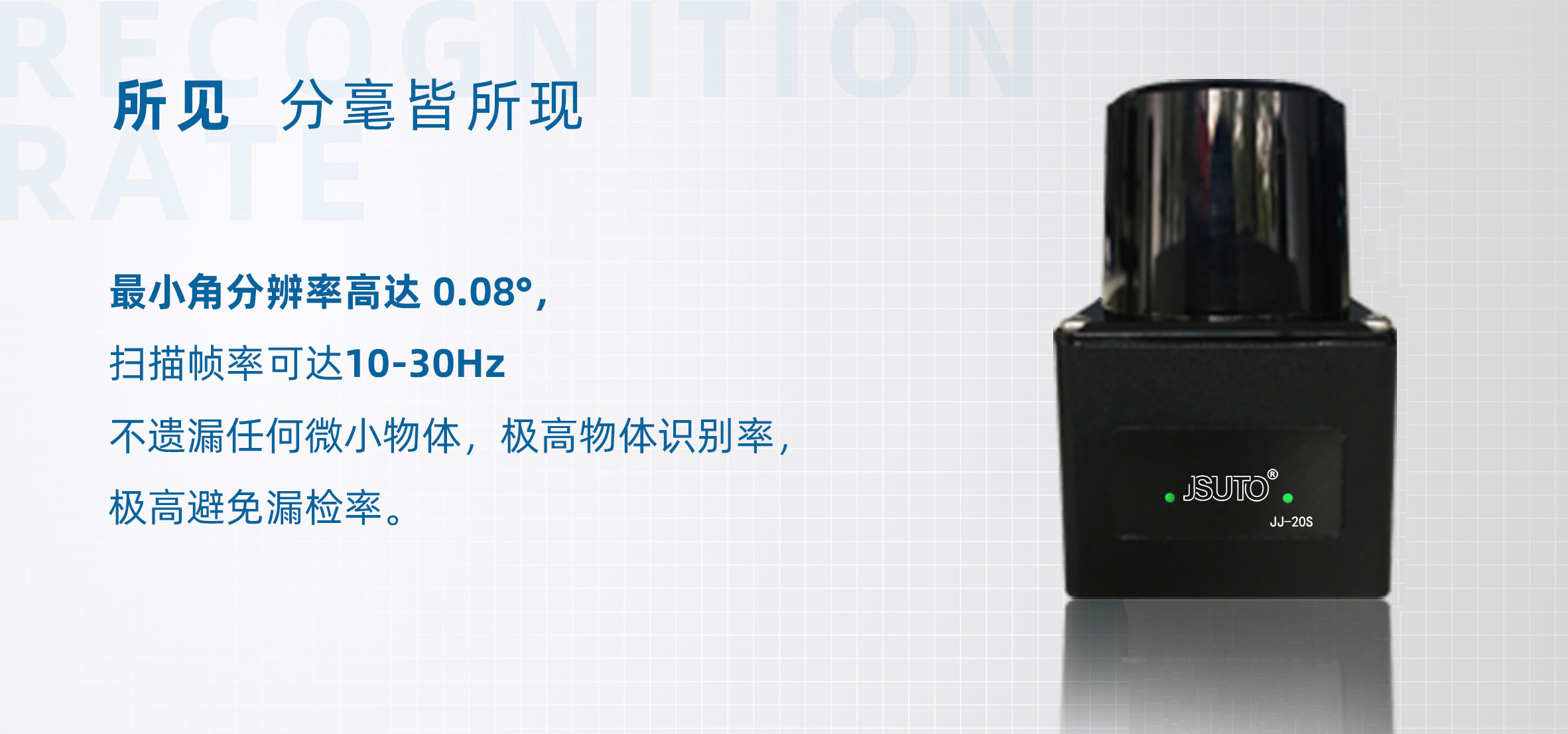 JSUTO可实现20m范围内的准确测量, 角度范围270°,得益于TOF方案优势和JSUTO 特有的高性能时间测量技术,JSUTO表现出远高于三角法雷达的测距性能,即便是对20m处的白板测量,也可获得±30mm的测距精度。提供业内顶尖的0.08°ZUI小角分辨率,实现对周围环境的精细还原。用户可以通过配置改变电机转速从而使输出的点云图像帧率在10-30Hz范围内调节。
